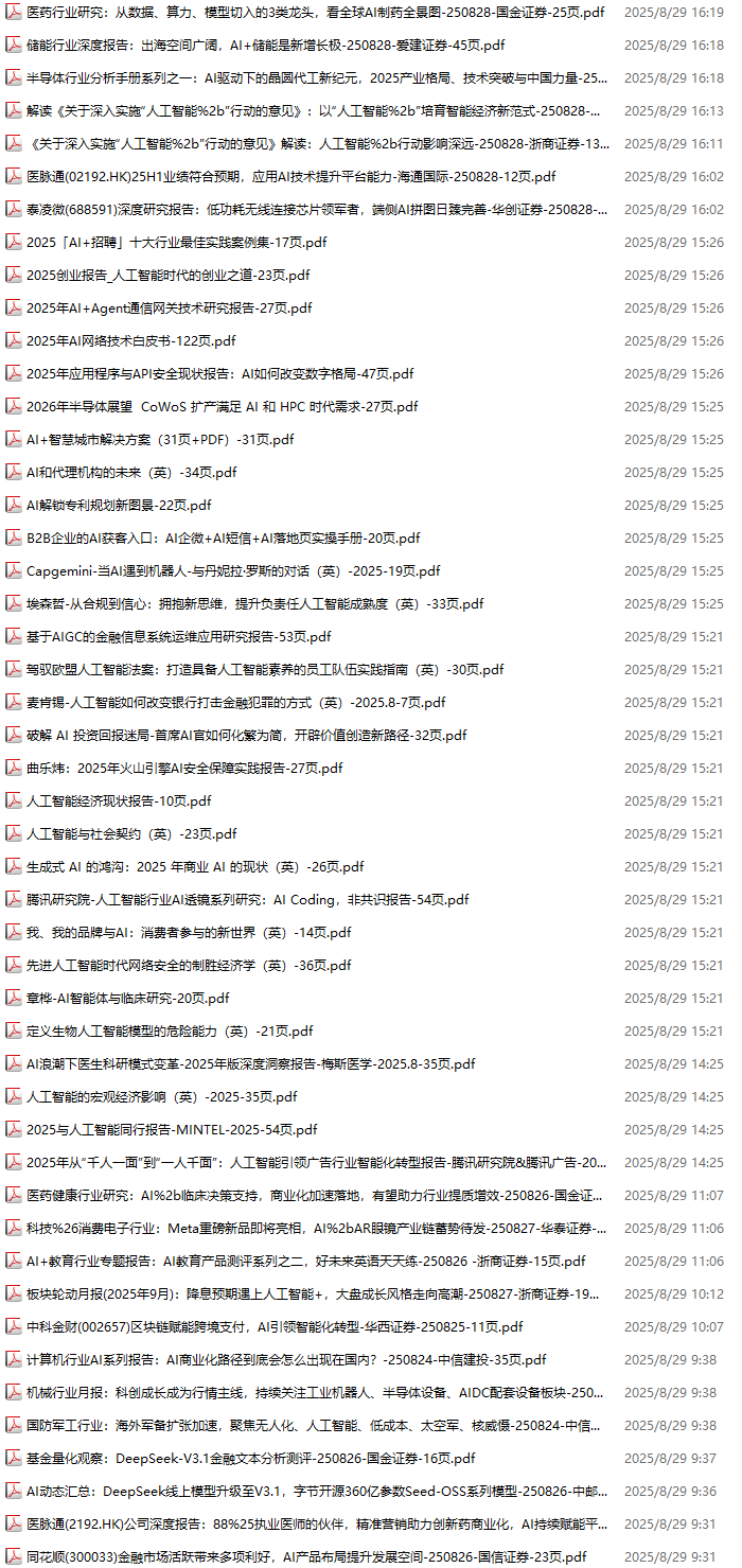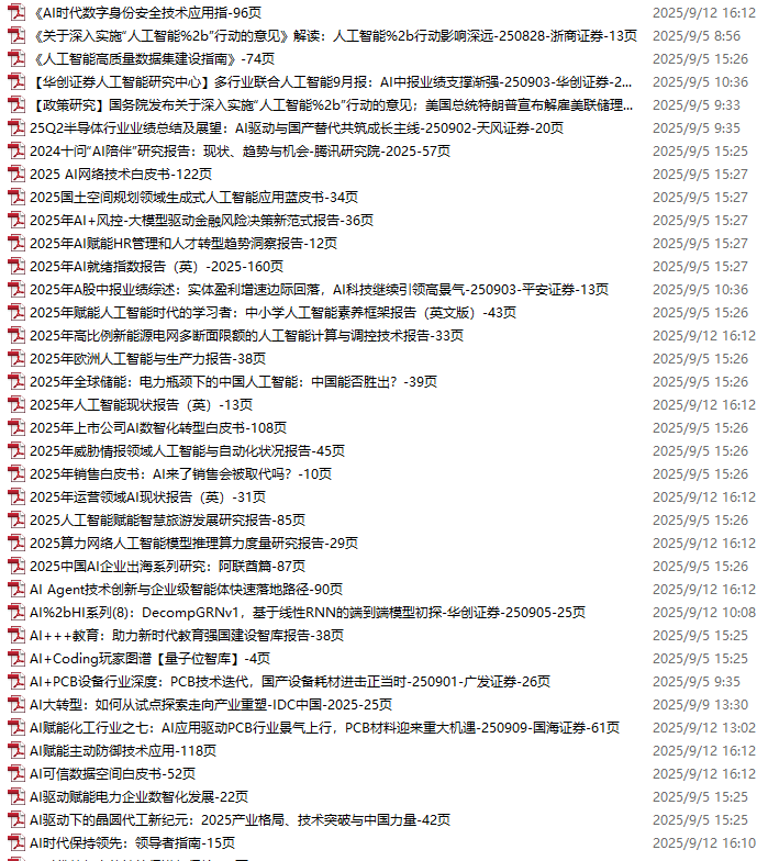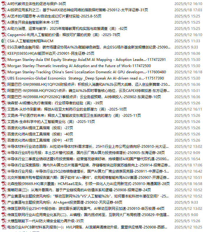 AI、人工智能、DeepSeek资料包,月度新增183份(2025.8.29-2025.9.18)