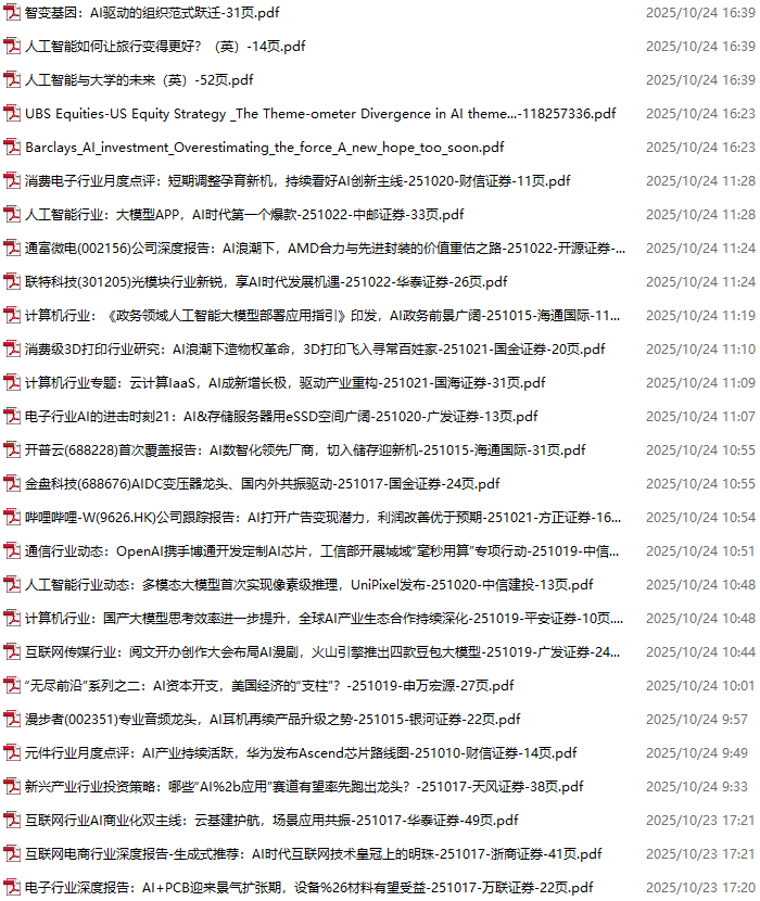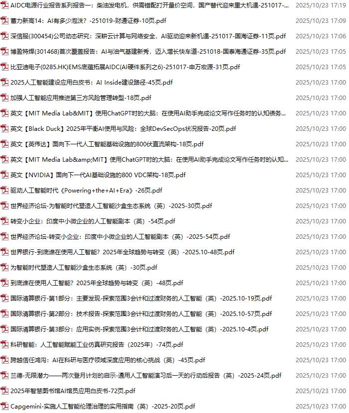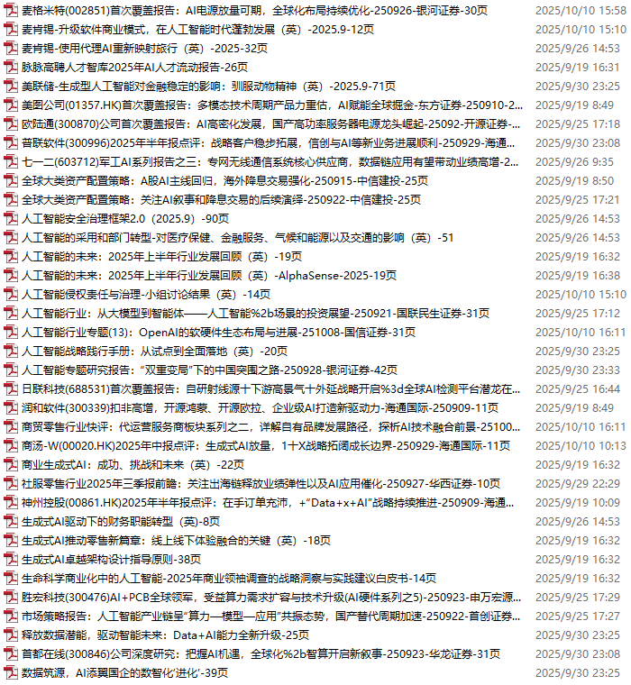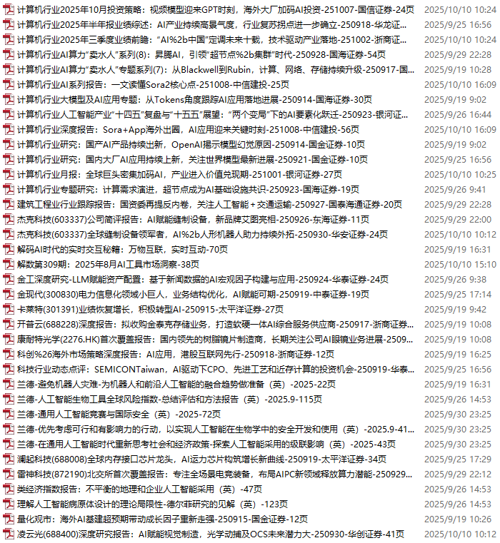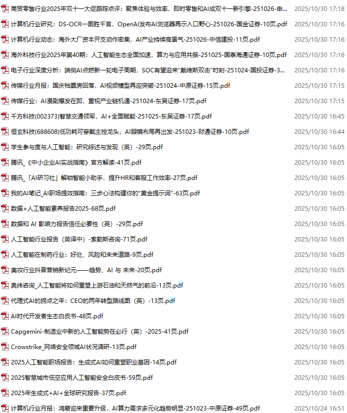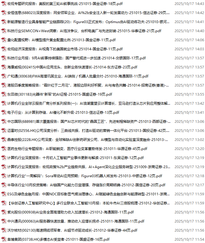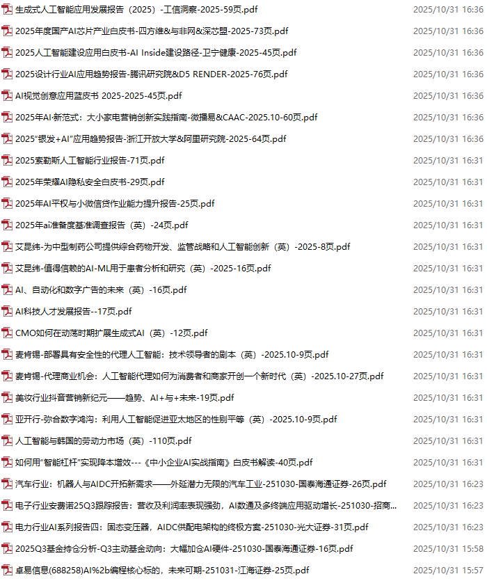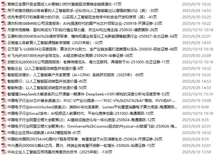 AI、人工智能、DeepSeek资料包,月度新增251份(2025.10.10-10.31)