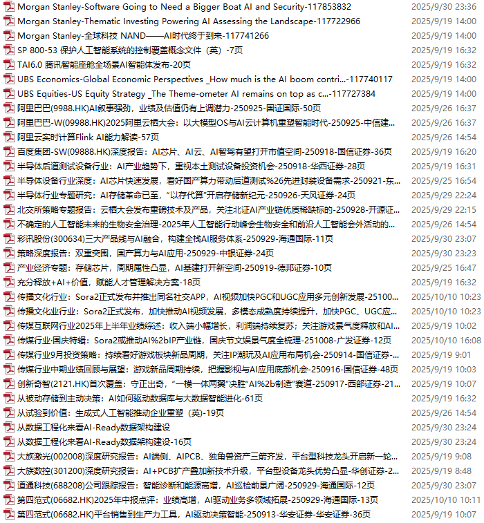 AI、人工智能、DeepSeek资料包,月度新增278份(2025.9.19-2025.10.10)