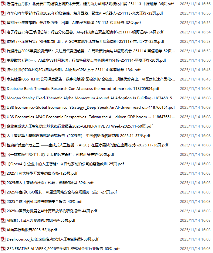 AI、人工智能、DeepSeek资料包,月度新增170份(2025.11.14-11.28)