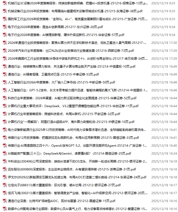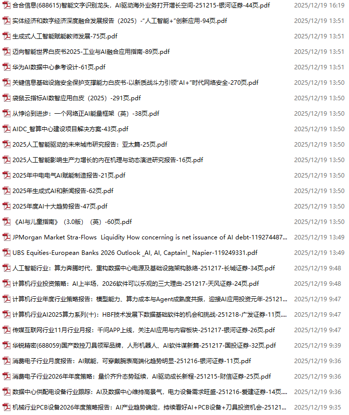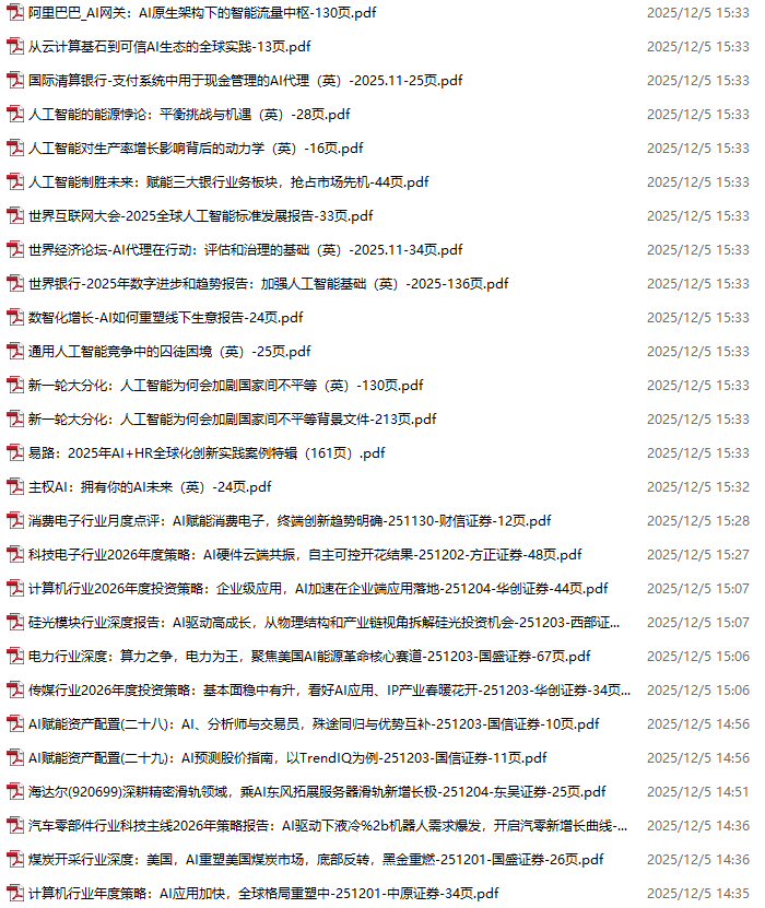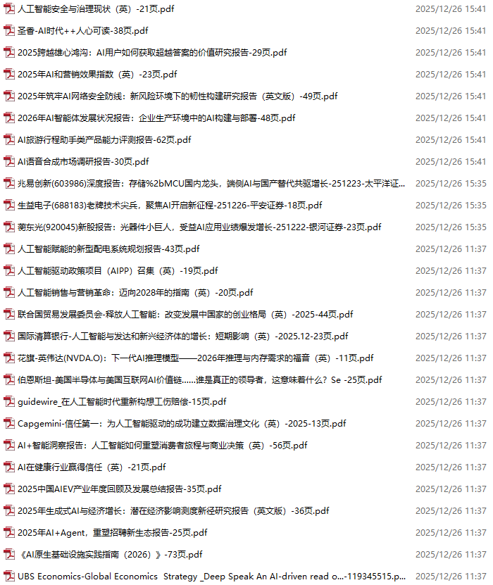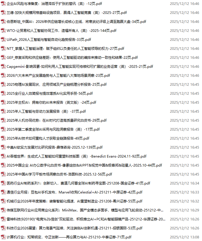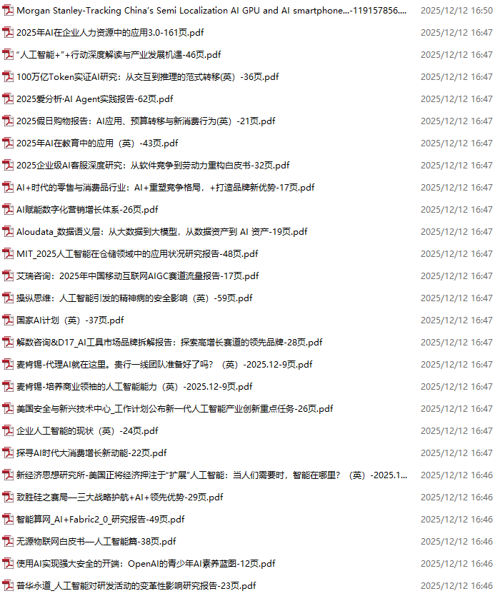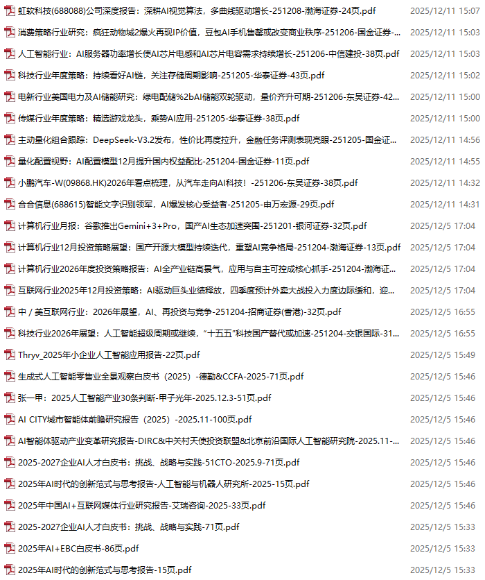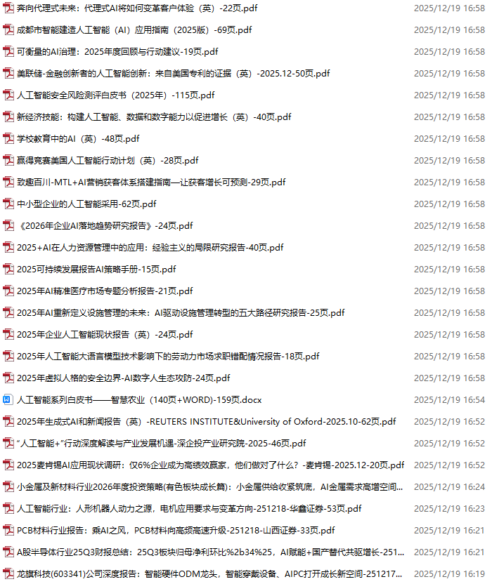 AI、人工智能、DeepSeek资料包,月度新增190份(2025.11.28-2025.12.17)