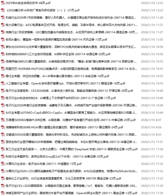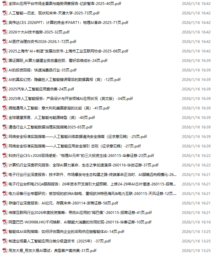 AI、人工智能、DeepSeek资料包,月度新增201份(2026.1.2-2026.1.16)