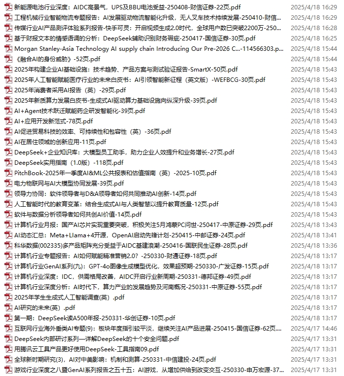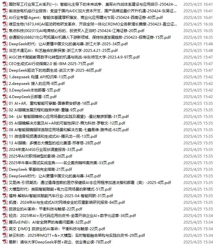 GPT、AIGC、AI、DeepSeek、大模型、多模态资料包,新增102份(2025.4.1-4.5)