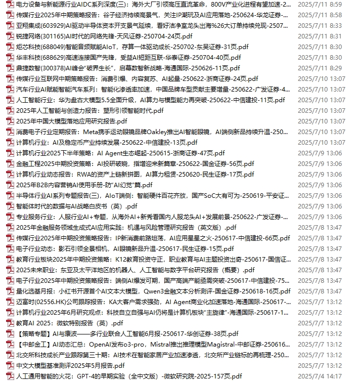 GPT、AIGC、AI、DeepSeek、大模型、多模态资料包,新增95份(2025.7.4-7.11)