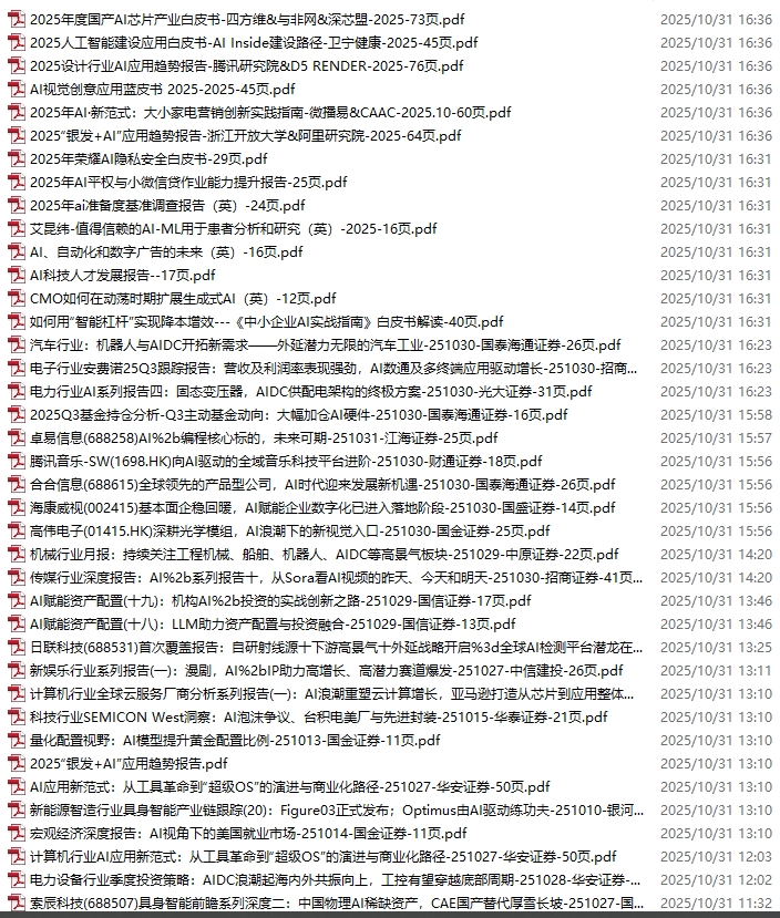 GPT、AIGC、AI、DeepSeek、大模型、多模态资料包,新增96份(2025.10.24-10.31)
