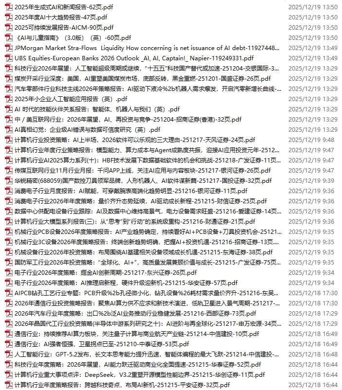 GPT、AIGC、AI、DeepSeek、大模型、多模态资料包,新增113份(2025.12.19-12.26)
