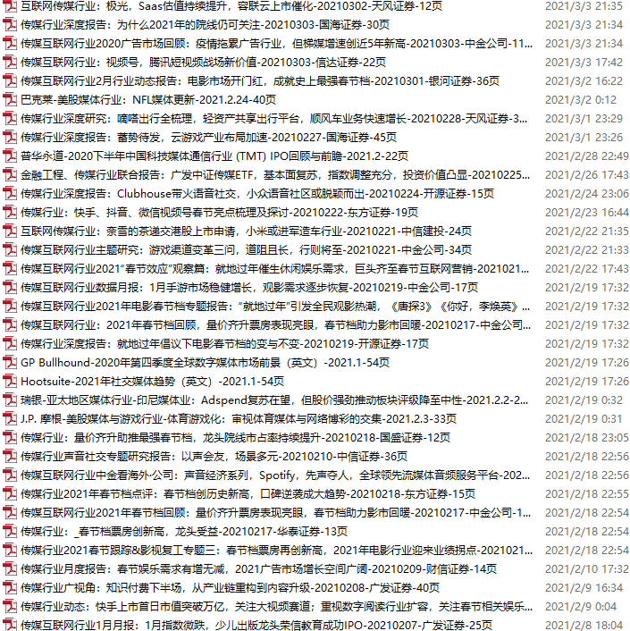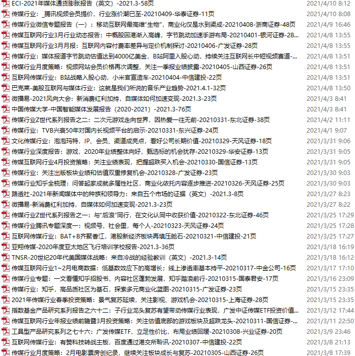 传媒媒体资料包,月度新增34份(2021.3.6-4.10)