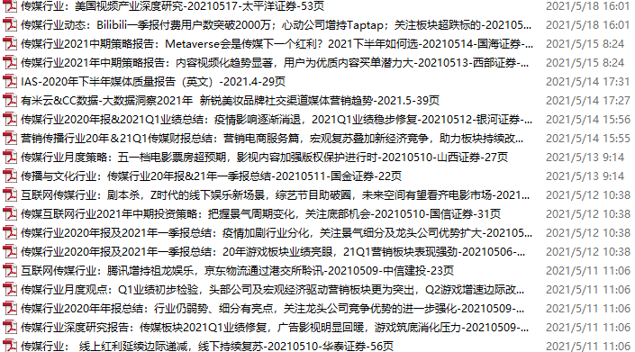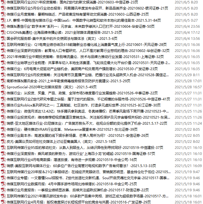 传媒媒体资料包,月度新增53份(2021.5.8-6.5)