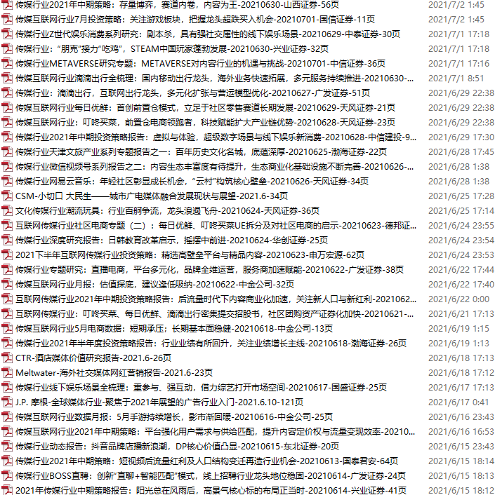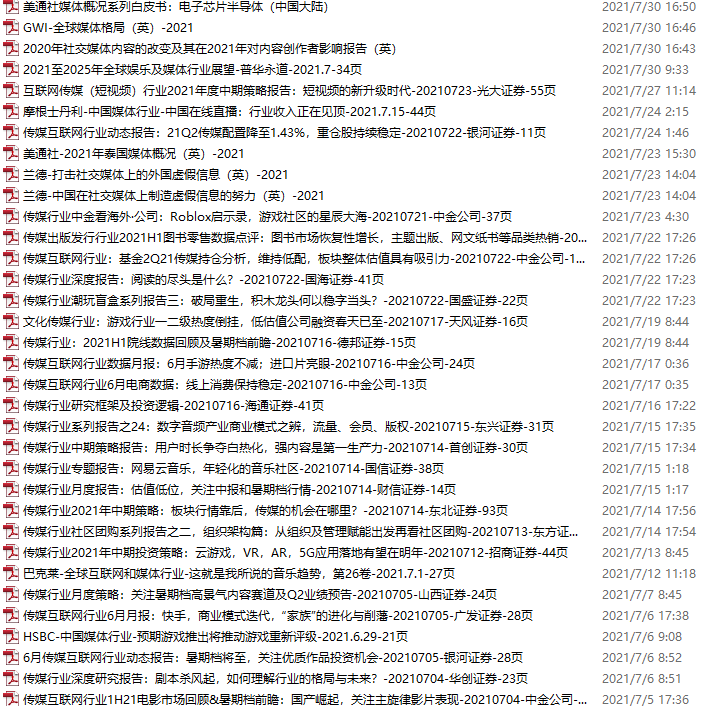 传媒媒体资料包,月度新增35份(2021.7.3-7.31)