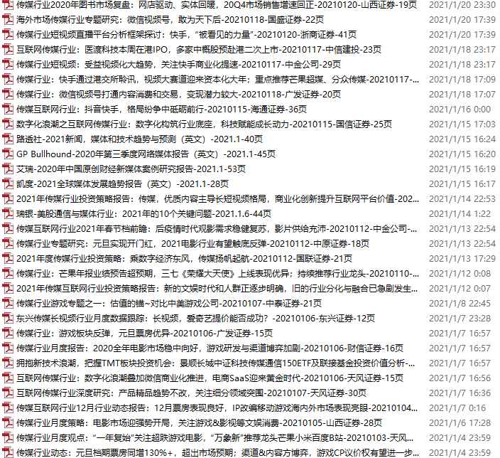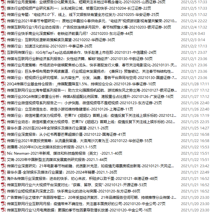传媒媒体资料包,月度新增65份(2021.1.2-2.6)