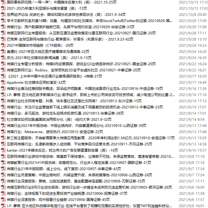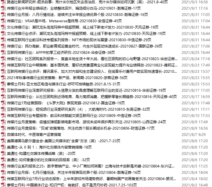 传媒媒体资料包,月度新增35份(2021.9.4-10.16)
