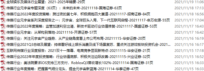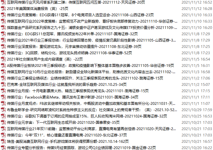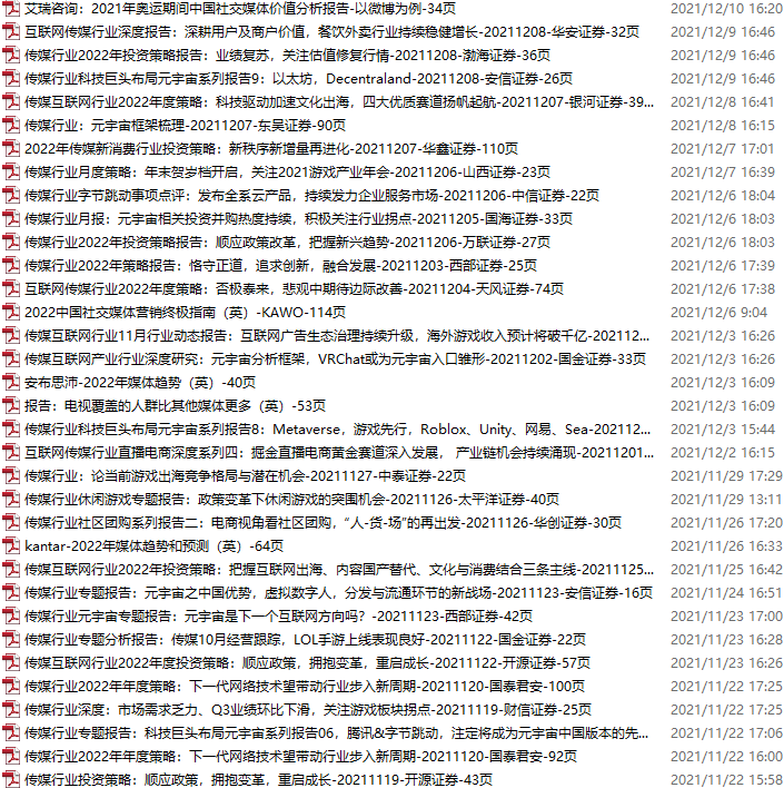 传媒媒体资料包,月度新增46份(2021.11.13-12.11)