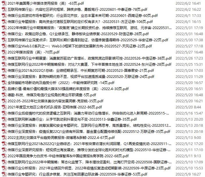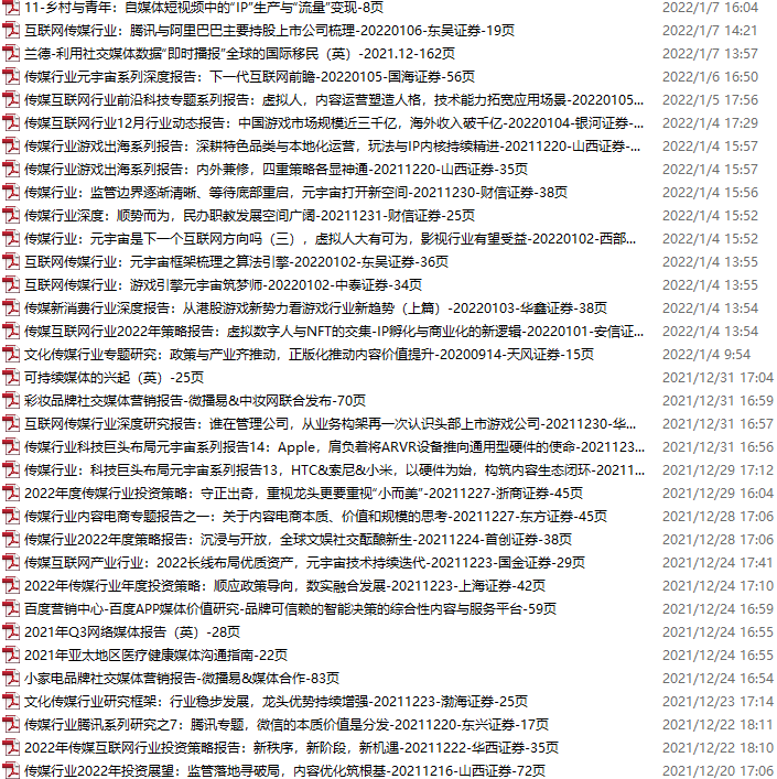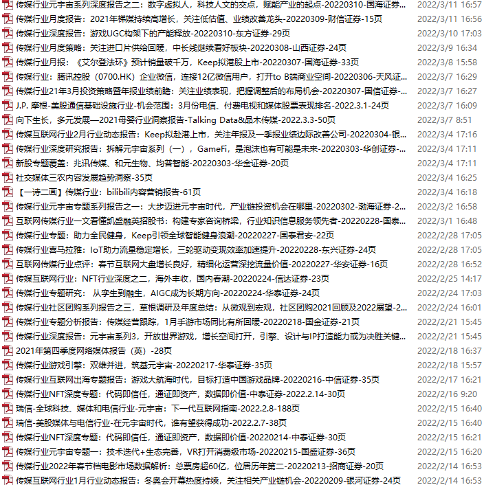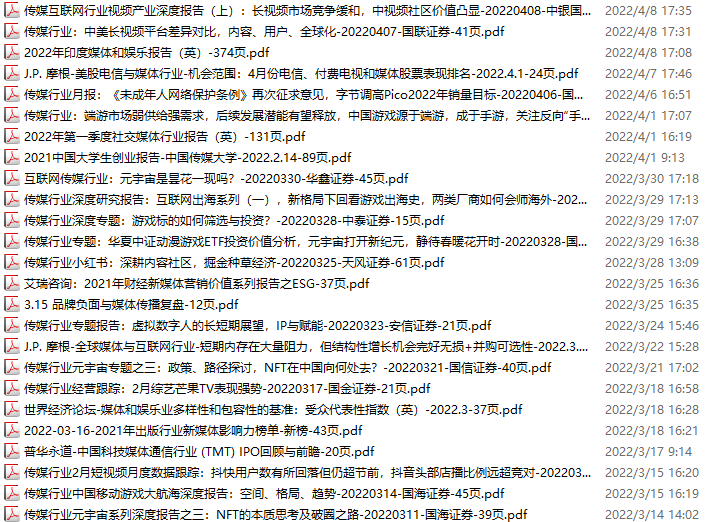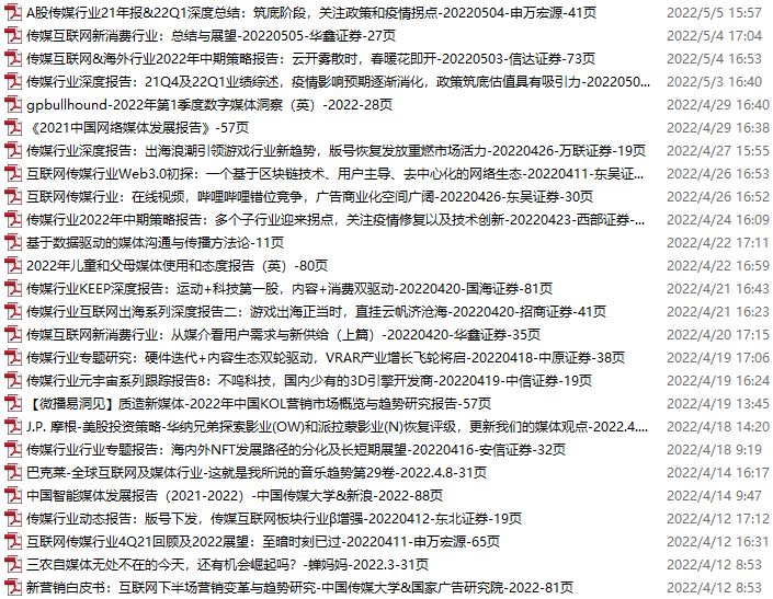 传媒媒体资料包,月度新增25份(2022.3.12-4.9)