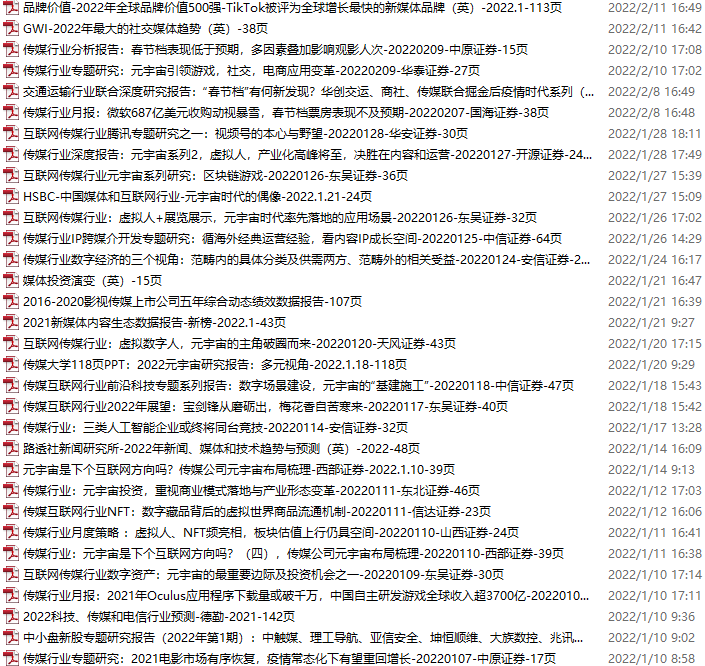 传媒媒体资料包,月度新增32份(2022.1.8-2.12)