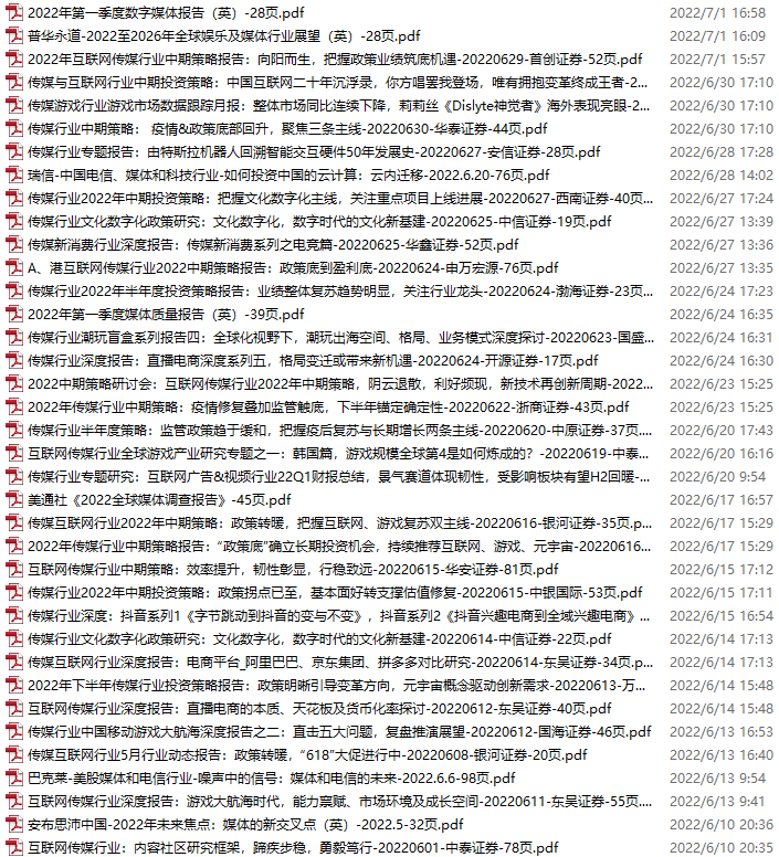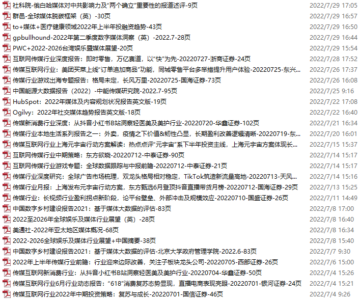 传媒媒体资料包,月度新增28份(2022.7.2-7.30)