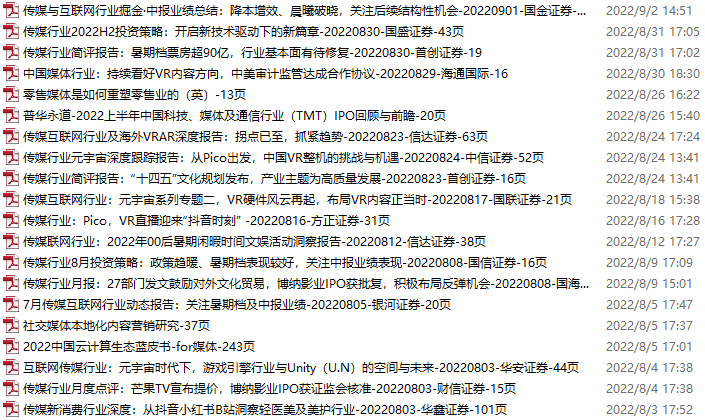 传媒媒体资料包,月度新增20份(2022.7.30-9.3)