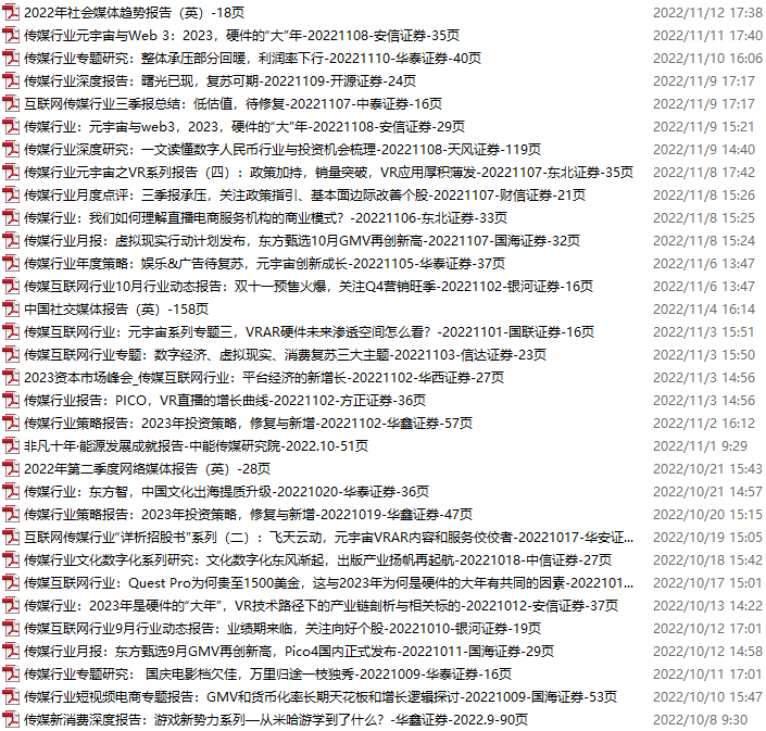 传媒媒体资料包,月度新增32份(2022.10.8-11.12)