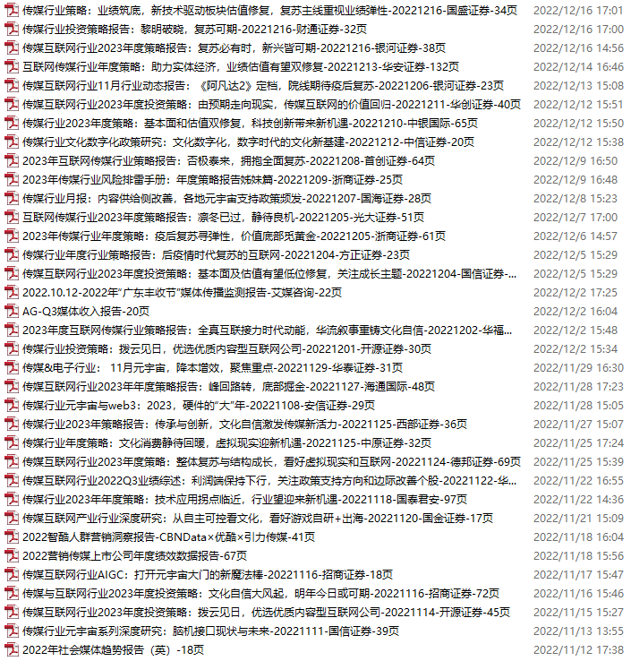 传媒媒体资料包,月度新增35份(2022.11.12-12.17)