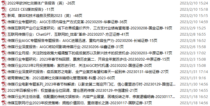 传媒媒体资料包,月度新增40份(2023.2.11-3.11)