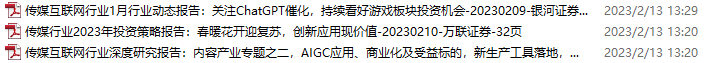 传媒媒体资料包,月度新增17份(2023.1.14-2.11)