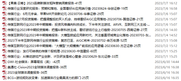 传媒媒体资料包,月度新增15份(2023.6.3-7.8)