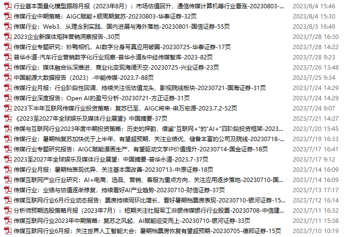 传媒媒体资料包,月度新增23份(2023.7.8-8.5)