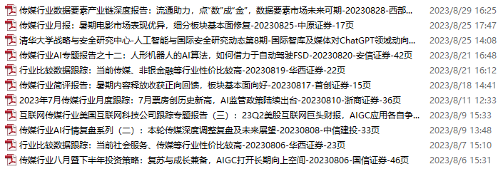 传媒媒体资料包,月度新增11份(2023.8.5-9.2)