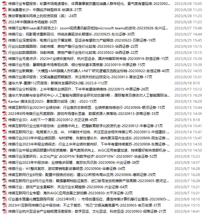 传媒媒体资料包,月度新增35份(2023.9.2-10.7)