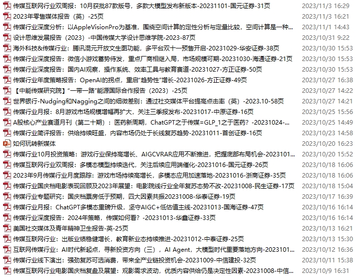 传媒媒体资料包,月度新增29份(2023.11.4-12.2)