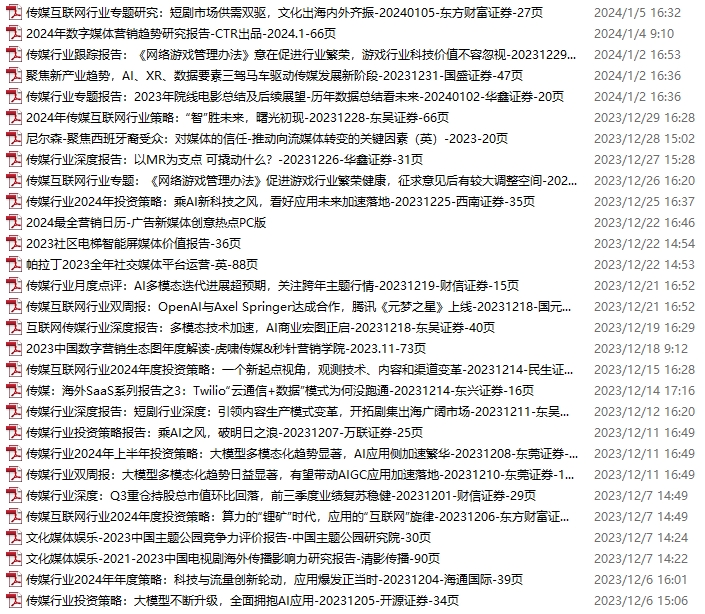传媒媒体资料包,月度新增29份(2023.12.2-2024.1.6)