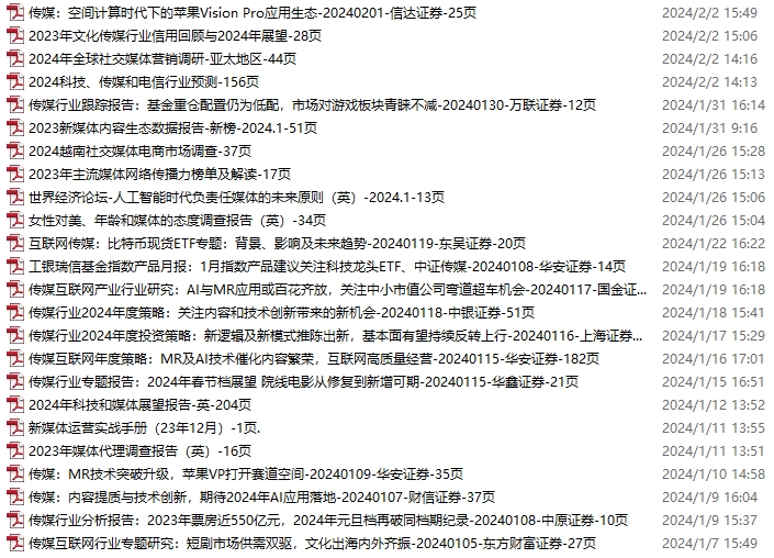 传媒媒体资料包,月度新增24份(2024.1.6-2.3)