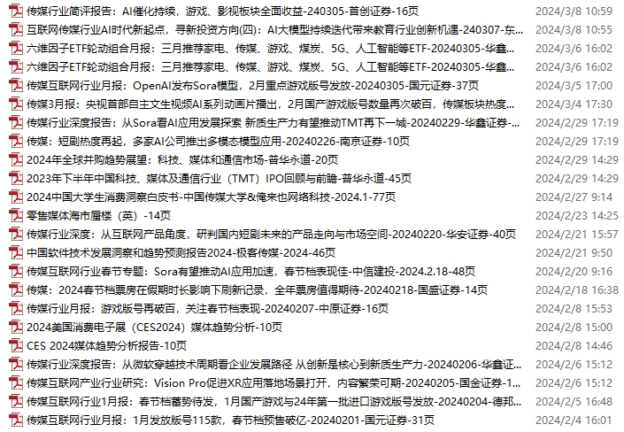 传媒媒体资料包,月度新增23份(2024.2.3-3.9)