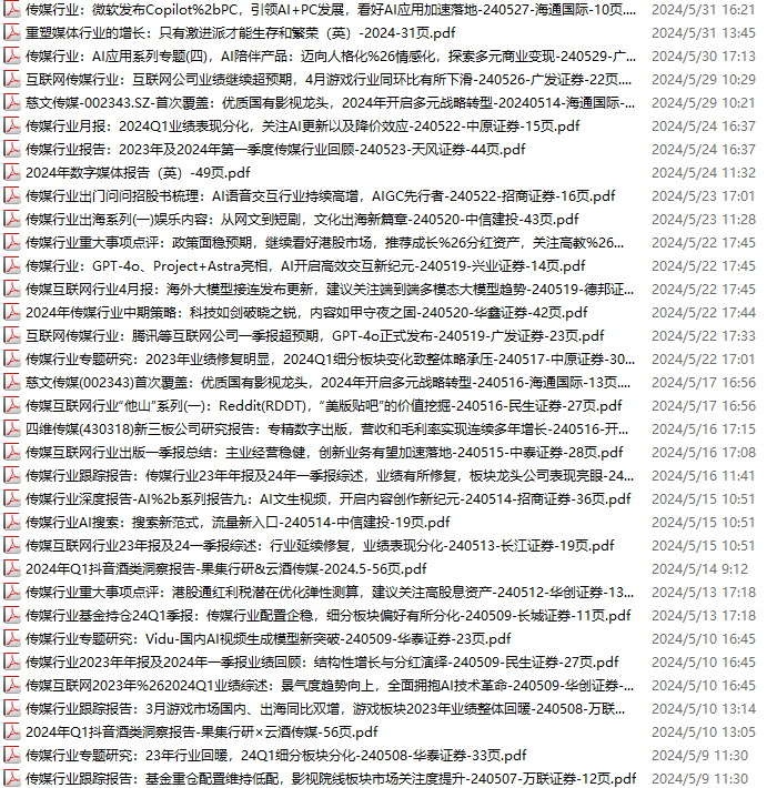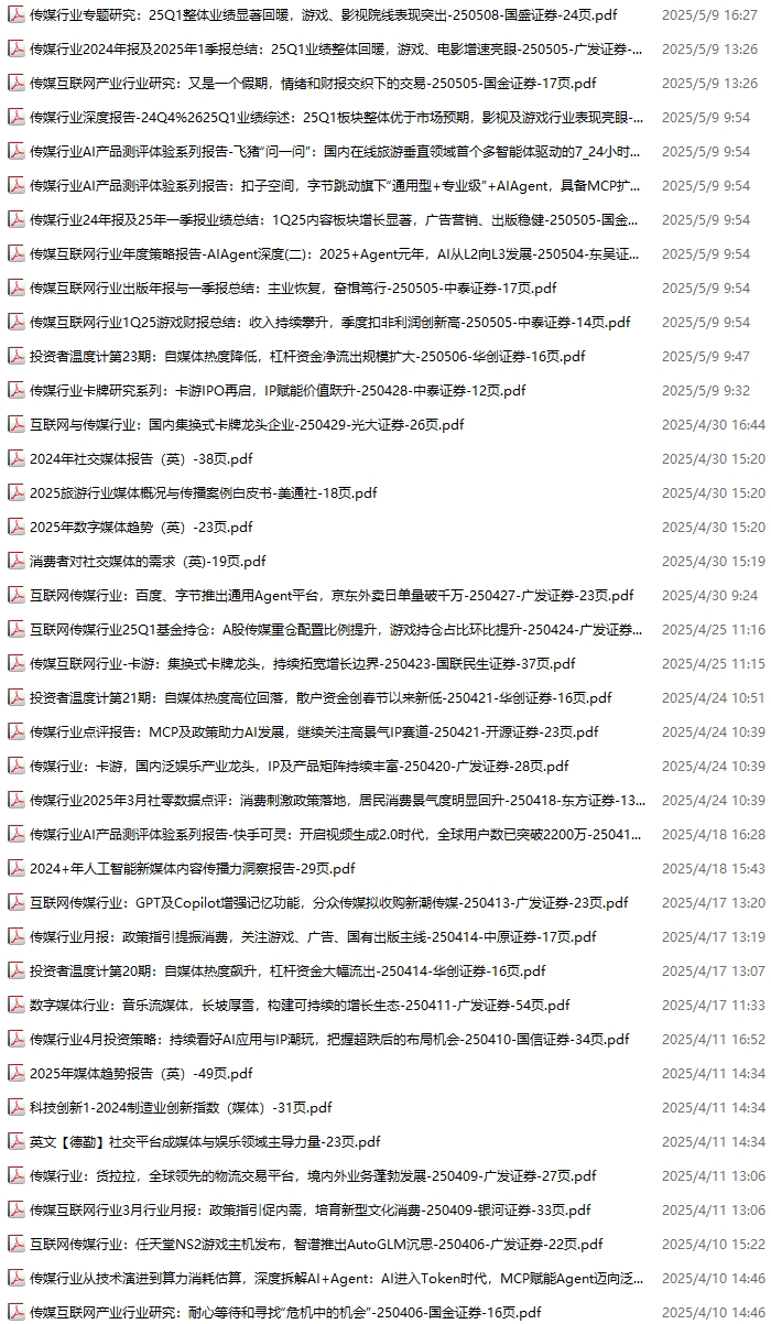 传媒媒体资料包,月度新增39份(2025.4.4-2025.5.10):