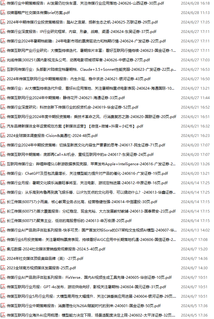 传媒媒体资料包,月度新增34份(2024.6.1-2024.6.29):