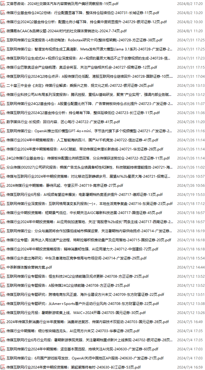 传媒媒体资料包,月度新增37份(2024.6.29-2024.8.3):