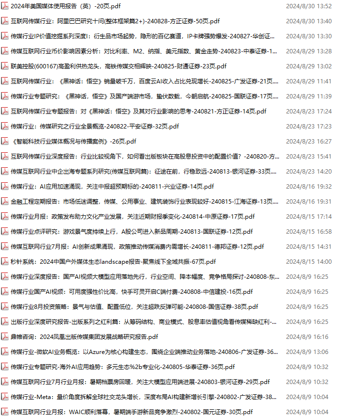 传媒媒体资料包,月度新增28份(2024.8.3-2024.8.31):