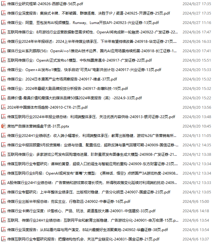 传媒媒体资料包,月度新增26份(2024.8.31-2024.10.6):