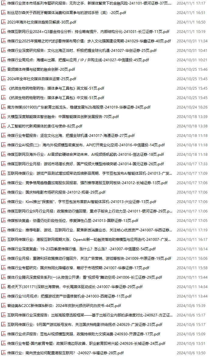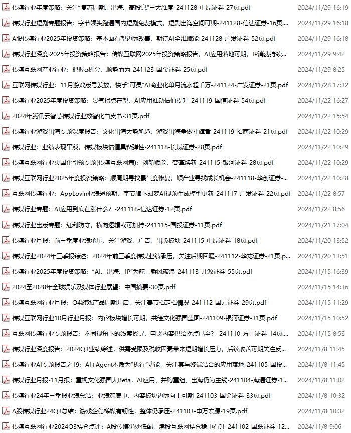 传媒媒体资料包,月度新增28份(2024.11.2-2024.11.30):