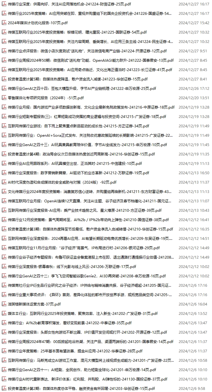 传媒媒体资料包,月度新增39份(2025.3.1-2025.4.4):