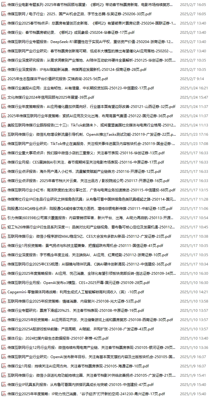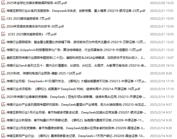 传媒媒体资料包,月度新增18份(2025.2.8-2025.3.1):