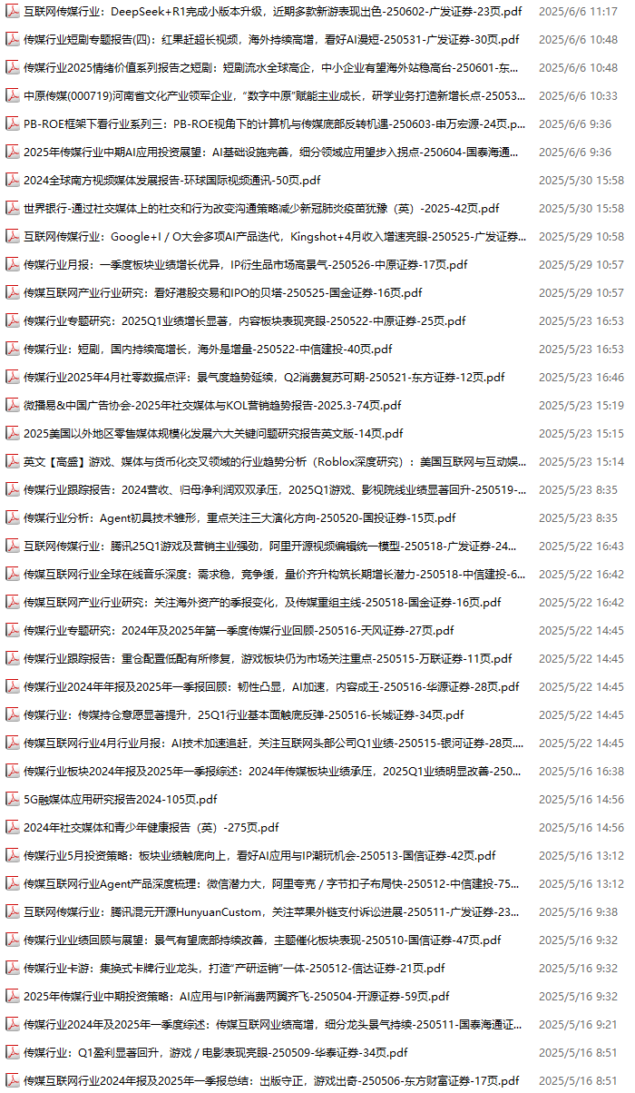 传媒媒体资料包,月度新增39份(2025.5.10-2025.6.6):