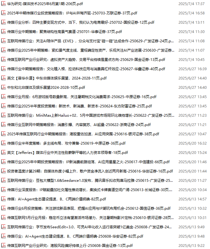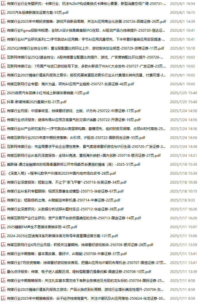 传媒媒体资料包,月度新增34份(2025.7.4-2025.8.1)