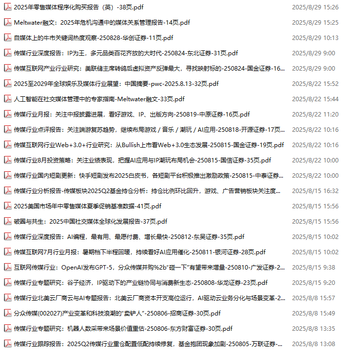 传媒媒体资料包,月度新增23份(2025.8.1-2025.8.29):