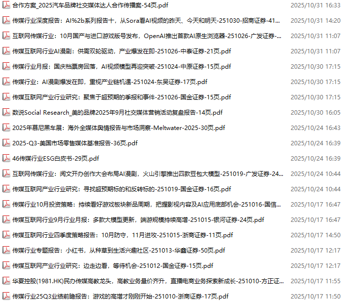 传媒媒体资料包,月度新增20份(2025.10.10-2025.10.31):