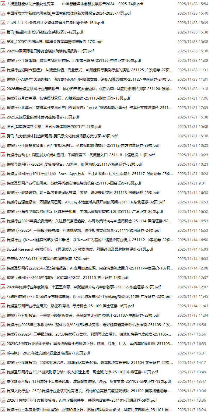 传媒媒体资料包,月度新增44份(2025.10.31-2025.11.28):