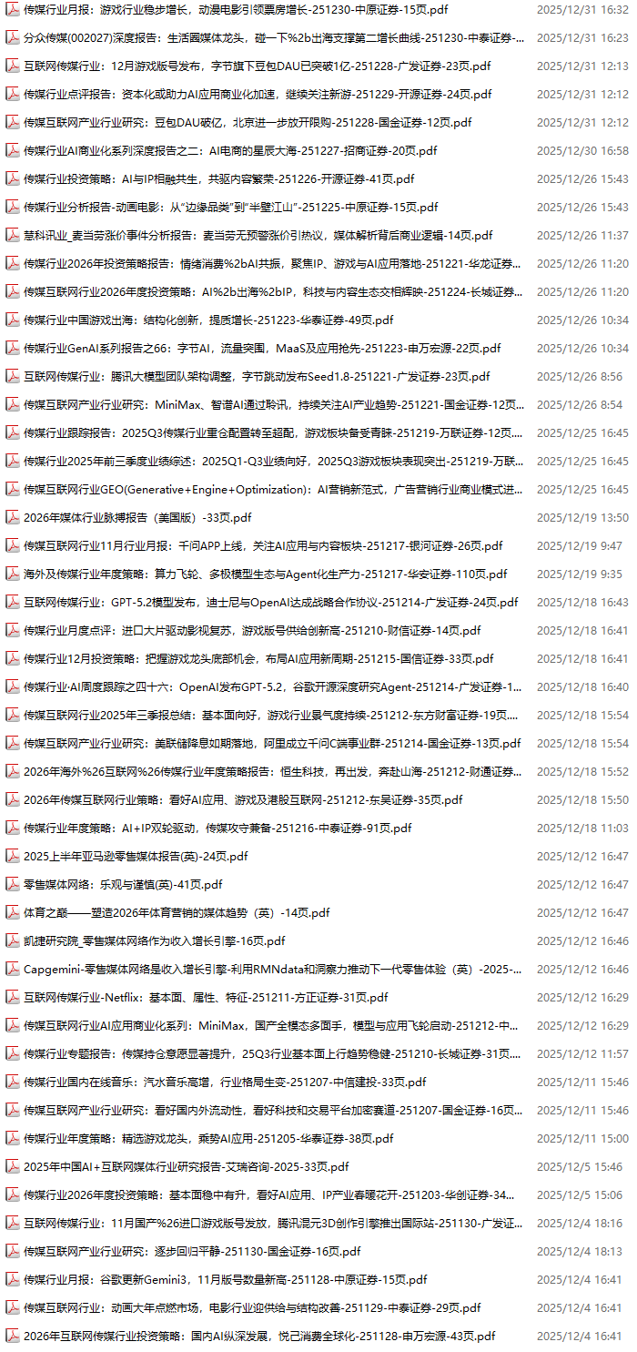 传媒媒体资料包,月度新增48份(2025.11.28-2025.12.31):