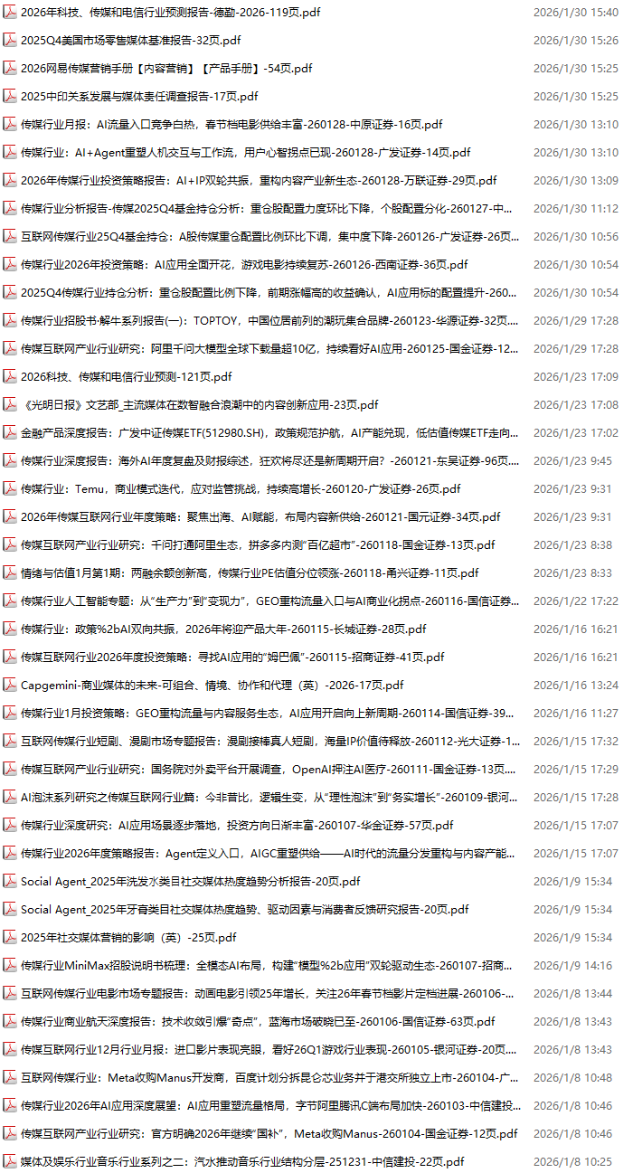 【传媒媒体资料包,2078份,更新至2026.1.31】