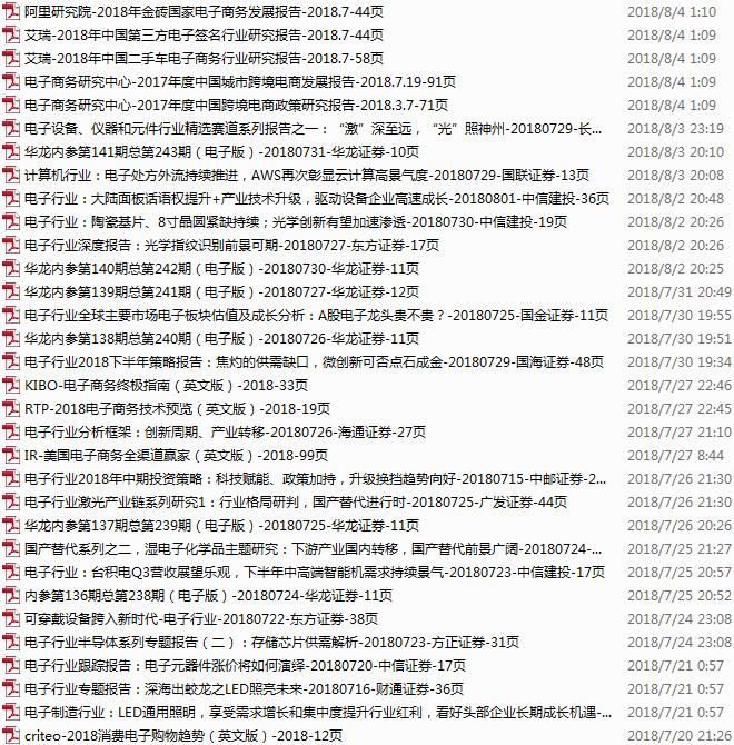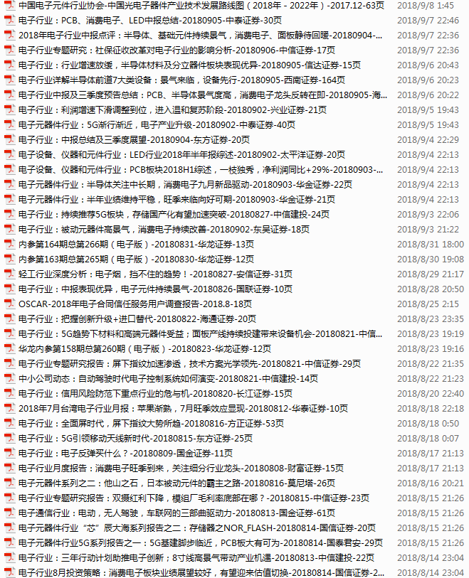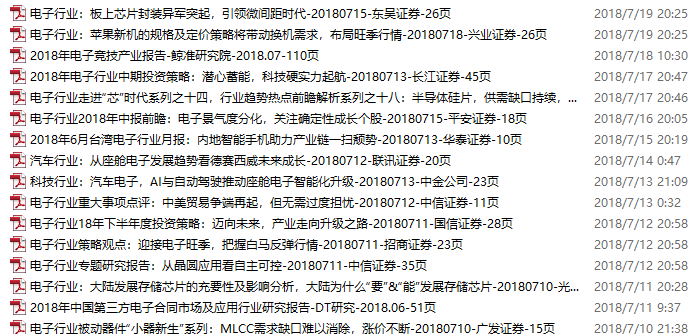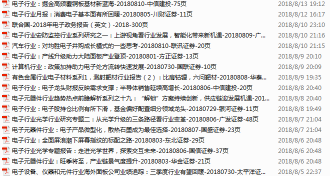 电子行业资料包,月度新增49份(2018.7.9-8.5)