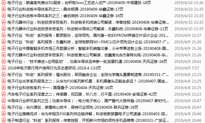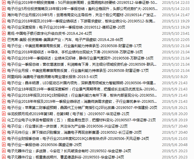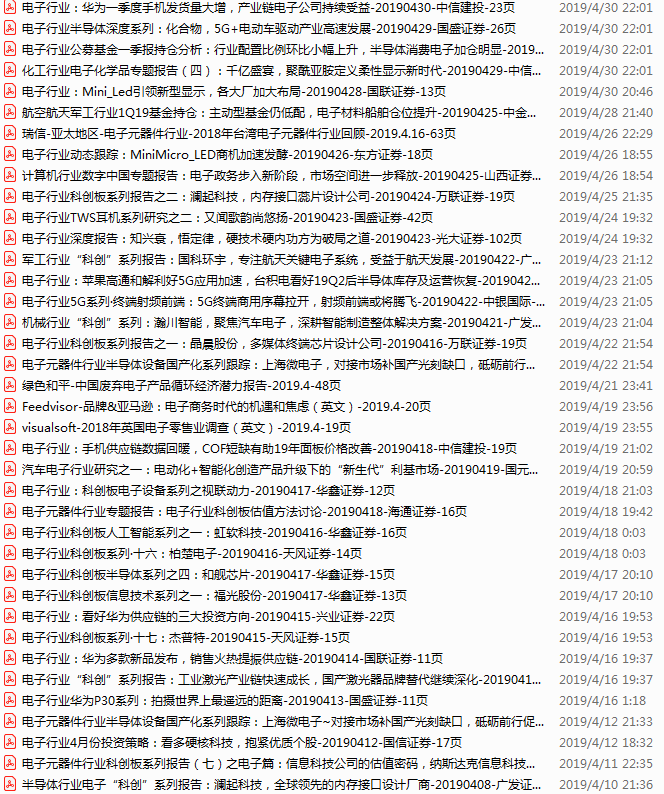 电子行业资料包,月度新增57份(2019.4.8-5.5)