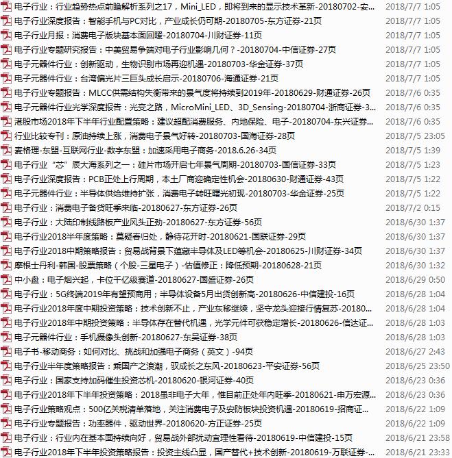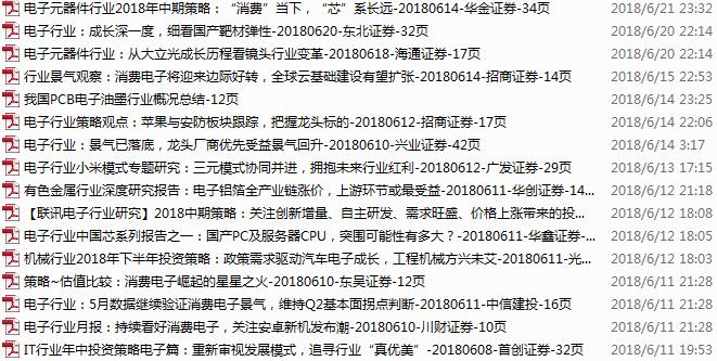 电子行业资料包,月度新增60份(2018.5.7-6.11)